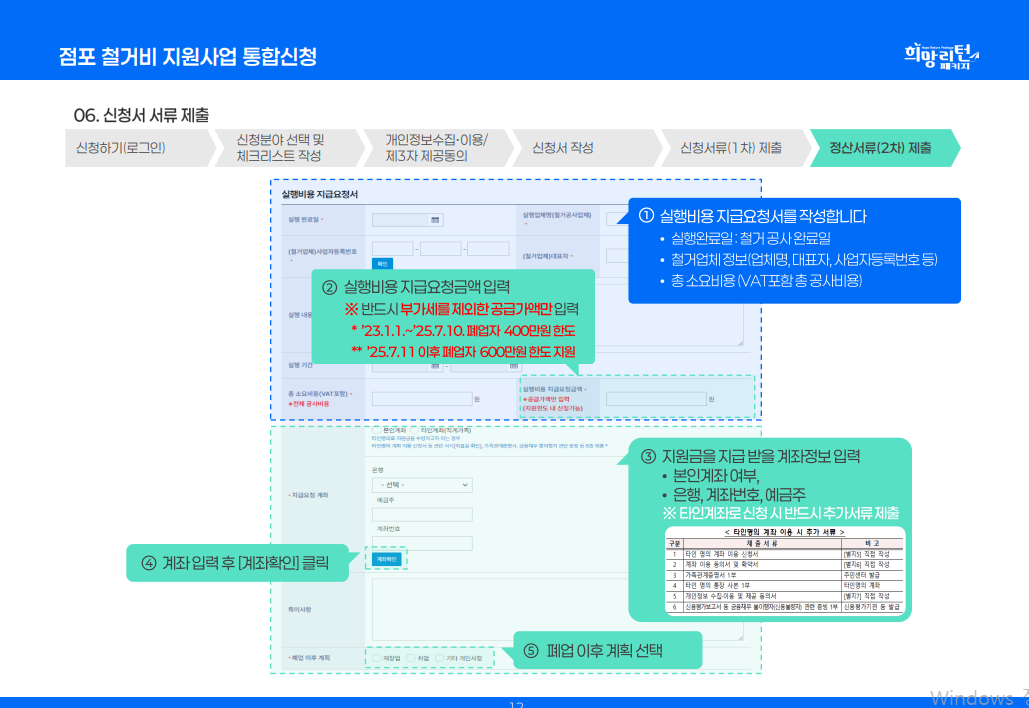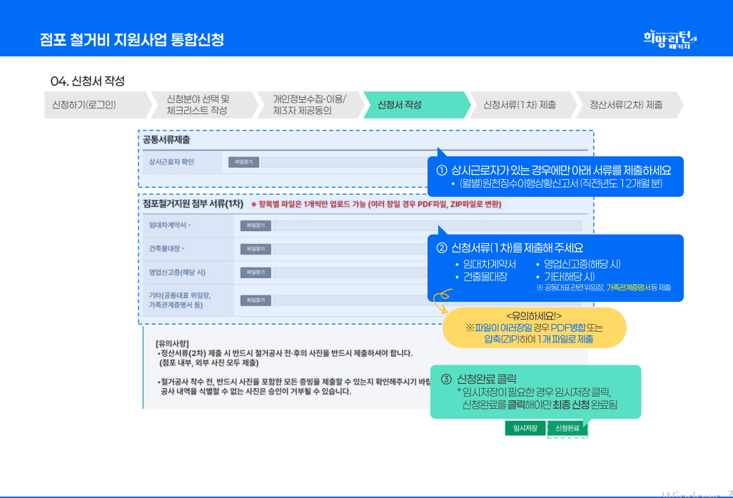 - 폐업과 철거가 완료된 점포만 신청할 수 있습니다.