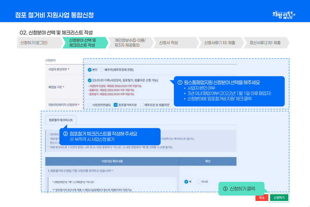 - 동일 점포 또는 사업자에 대해 중복 신청은 불가합니다.