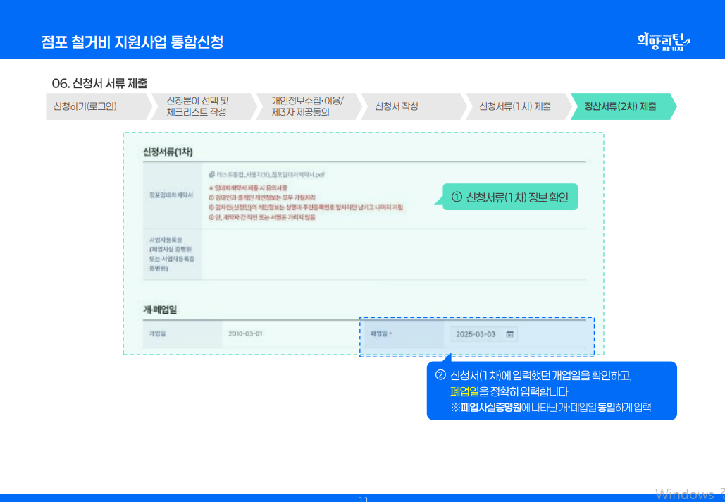- 폐업 점포에 대해 철거가 완료되었거나 철거 예정이어야 합니다.
