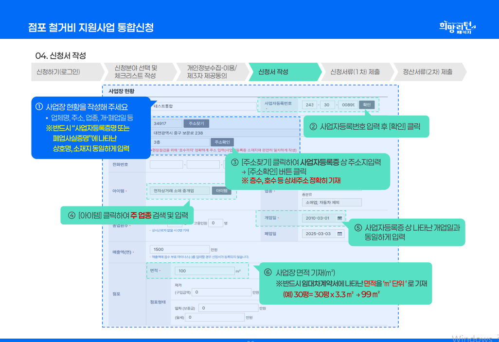 - 동일 점포에 중복 신청은 불가하며, 허위 신청 시 법적 책임이 따릅니다.