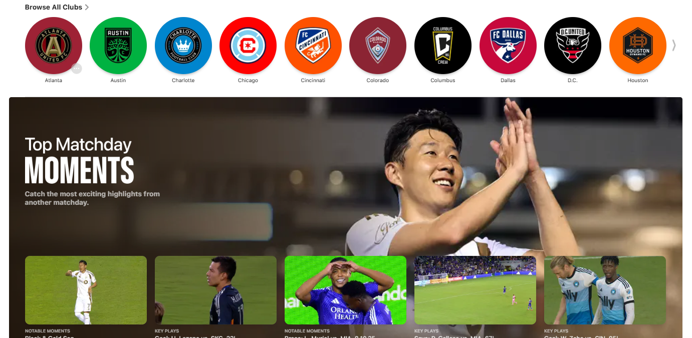 애플TV는 MLS와 독점 중계권 계약을 체결하여 모든 MLS 중계 경기를 제공하고 있습니다. MLS 시즌 패스를 구독하면 정규리그, 컵대회, 플레이오프까지 모든 경기를 광고 없이 시청할 수 있습니다. 해설 및 중계 언어 선택이 가능하며, 경기 하이라이트와 다시보기 서비스도 지원합니다. 특히 MLS 중계 경기를 고화질로 감상할 수 있어 경기 몰입도가 높습니다.